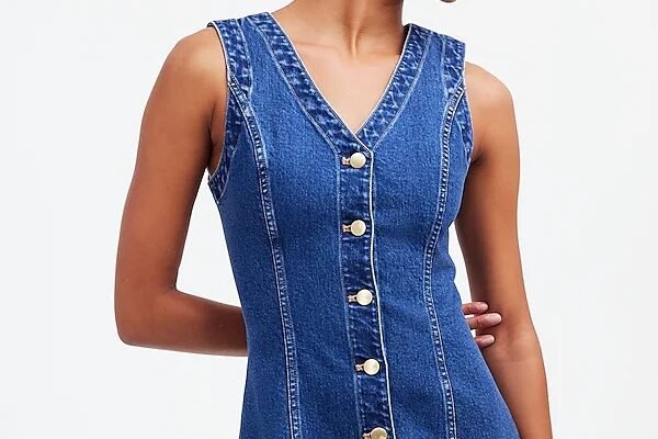 The MadeWell Denim V-Neck Midi Dress Posted on September 30, 2024December 2, 2025 by FashionBuzz Editors Inspired by the classic denim vest, this V-neck midi dress has seaming details and buttons running all down the front. Wear with boots and lean into the western vibe.